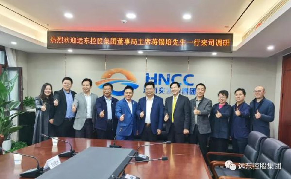 6.11月16日,遠東控股集團創始人、董事局主席、黨委書記蔣錫培率隊拜訪中國聯合工程有限公司(簡稱:中國聯合),與中國聯合黨委書記、董事長錢向東,中國聯合總經理、黨委副書記沈瑞宏,中國聯合生產經營部部長陸鋒、第二工業工程設計研究院院長蔡建平、新能源工程設計研究院院長趙光杰、電力工程設計研究院副院長錢懷洲、能源與環境工程公司總經理助理申宇、綜合管理部副部長吳懌哲座談,雙方就儲能電池等新能源領域業務達成共識。資深合伙人、遠東控股集團黨委委員、董事、遠東智慧能源股份有限公司(簡稱:遠東股份 股票代碼:600869)電纜產業執行總經理陳靜,高級合伙人、遠東股份電纜產業首席戰略客戶官賈海,遠東股份電纜產業戰略拓展官梅閃閃,高級合伙人、遠東股份電纜產業戰略拓展官兼執行總經理秘書汪樂,集團董事局主席秘書尹華杜,遠東股份電纜產業市場分析經理黨麗娟、戰略客戶服務經理王輝隨行。蔣錫培表示,遠東期待與中國聯合深度合作,持續深化探索合作模式,攜手帶動區域產業鏈發展,同時誠摯邀請中國聯合團隊來宜興考察交流。